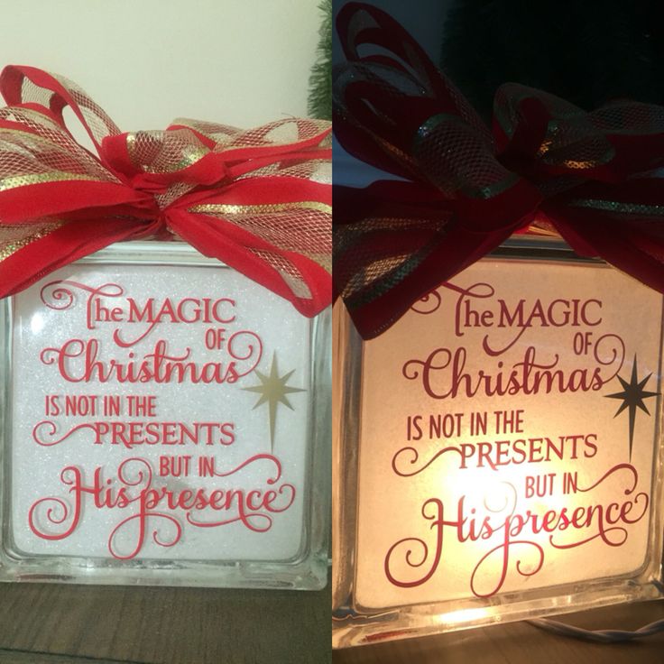 Glass block, glittered inside, vinyl cut from Cricut on outside